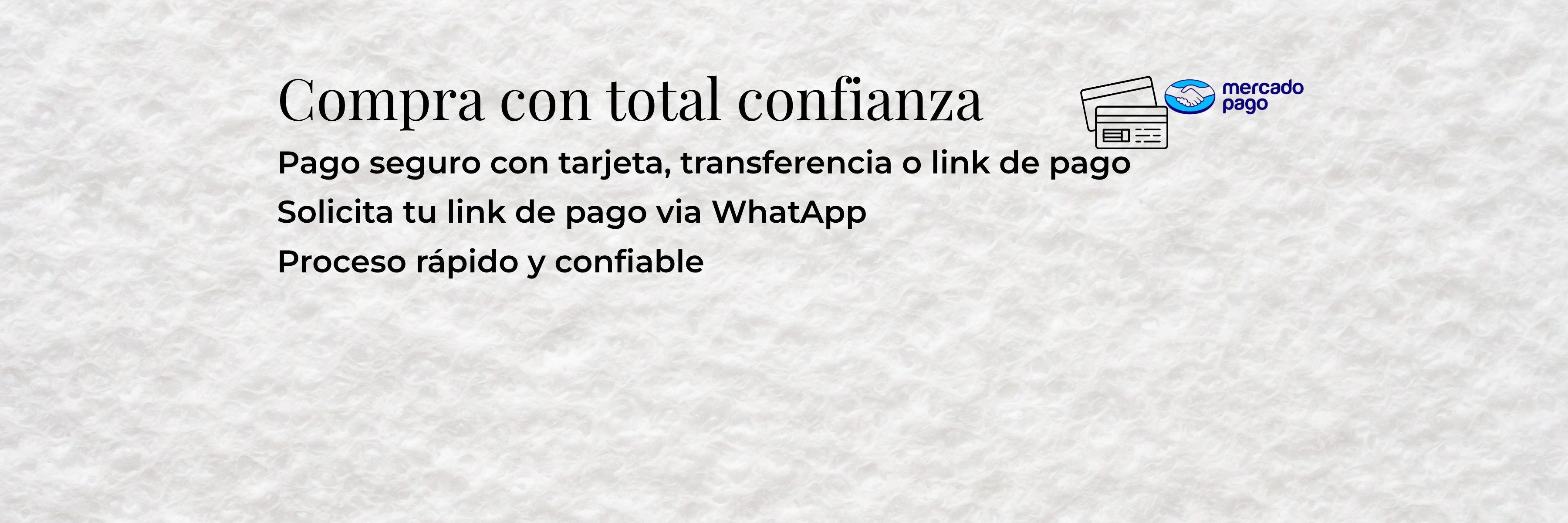 Compra con total confianza: envío gratis a todo México y métodos de pago seguros como Mercado Pago, transferencia bancaria o link de pago respaldado por Santander.